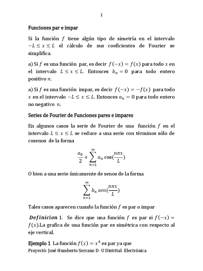 Series De Fourier De Funciones Pares E Impares Integral Funcion Matematicas