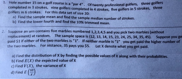 Solved 1 Hole Number 15 On A Golf Course Is A Par 4 O