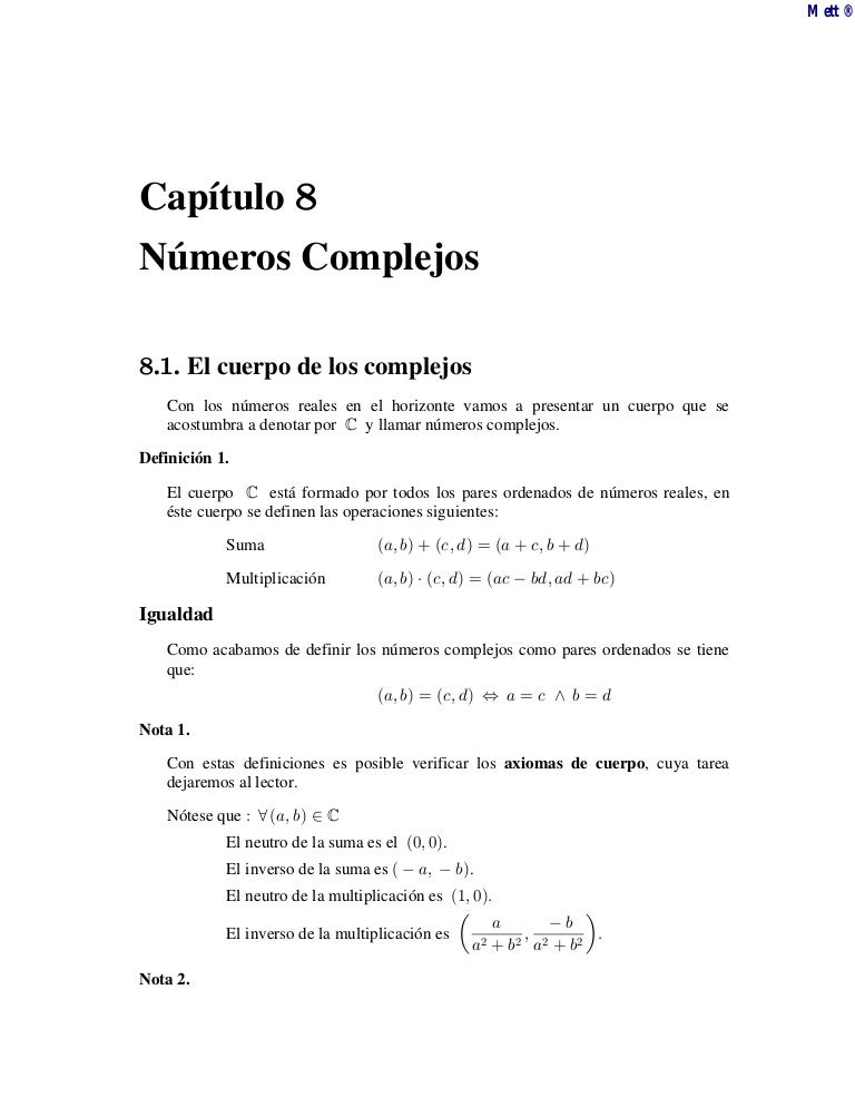 Capitulo 1 Numeros Complejos Y Plano Complejo Variable Compleja