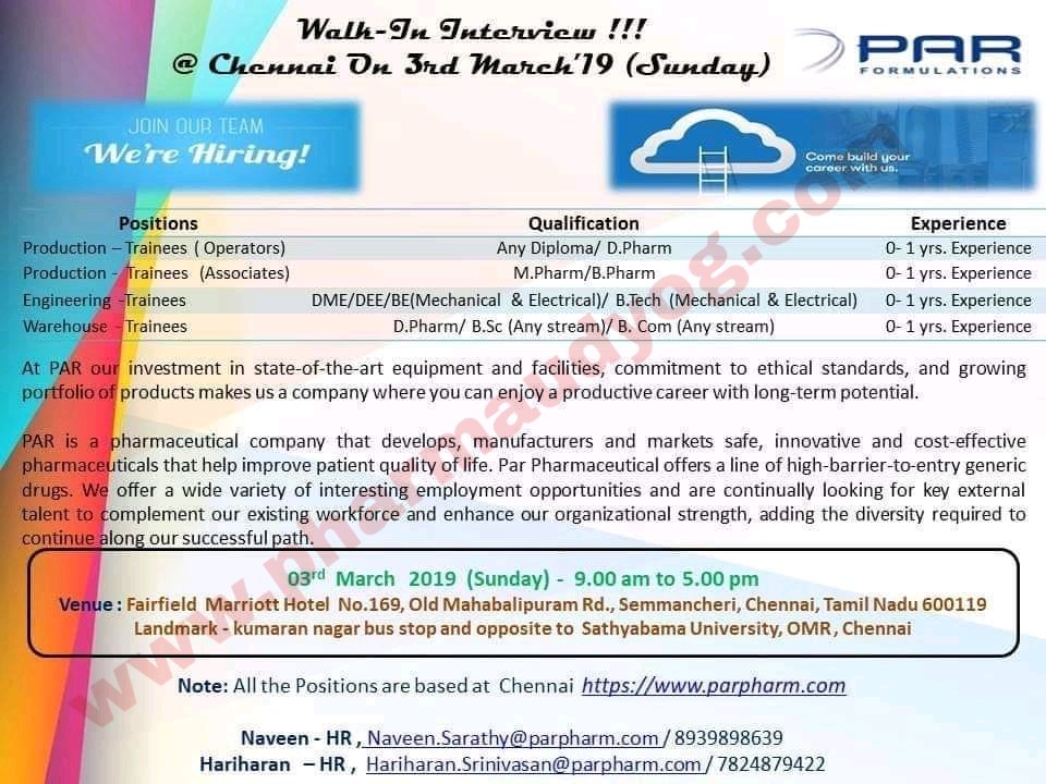Par Formulations Walk In Interview For Multiple Positions On