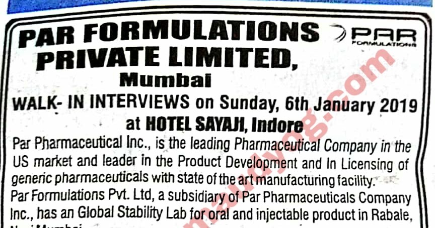 Pharma Job And Learning Par Formulation Walk In Interviews For
