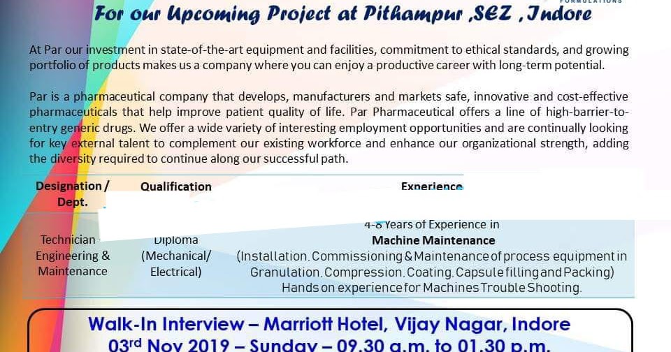 Par Formulations Walk In For Multiple Roles 6th Jan 2019 Indore
