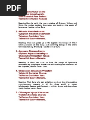 Guru Brahma Gurur Vishnu With Meaning In English Moksha Hindu