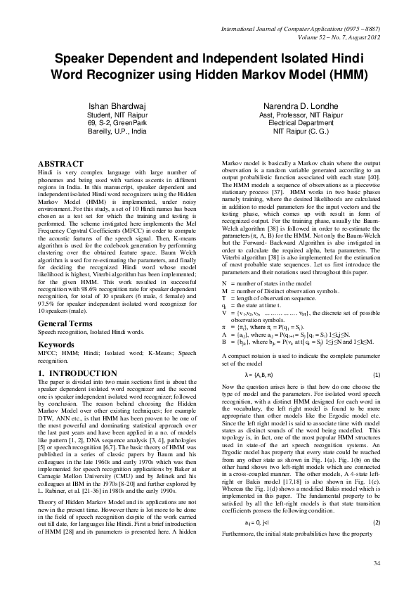 Pdf Speaker Dependent And Independent Isolated Hindi Word