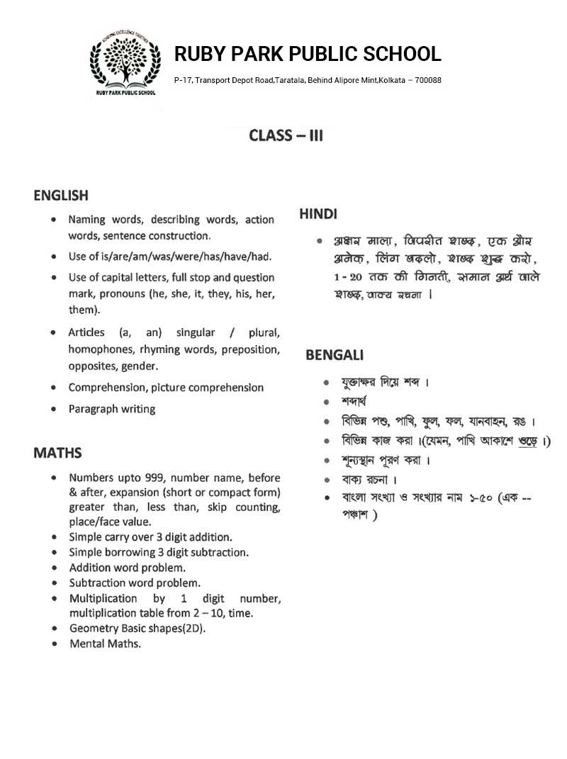 Syllabus For Assessment Class Iii 2020 21 Ruby Park Public School