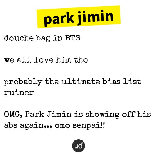Urban Dictionary On Twitter Park Jimin Douche Bag In Bts We All Love Him Tho Probably The Https T Co Kydqclzi3g