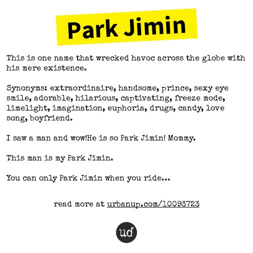 Urban Dictionary On Twitter Park Jimin This Is One Name That Wrecked Havoc Across The G Https T Co Yaodrivb6e
