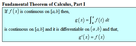 Fundamental Theorem Of Calculus Part I Mathematics Stack Exchange