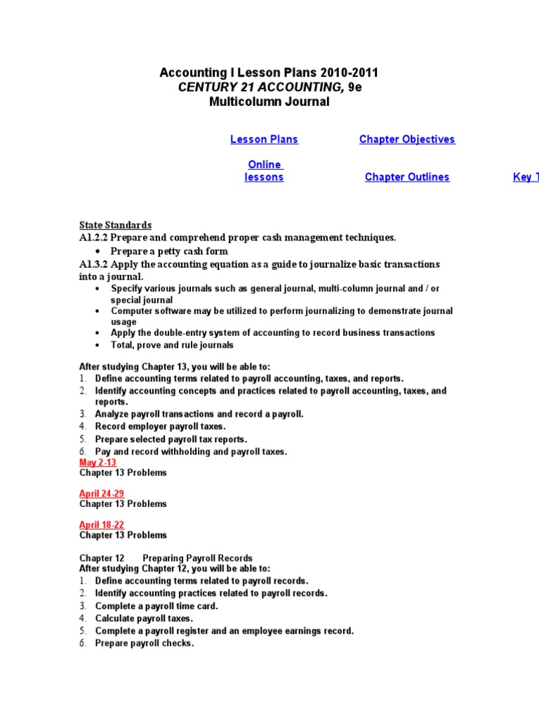 Century 21 Accounting 8e General Journal Chapter Objectives Pdf