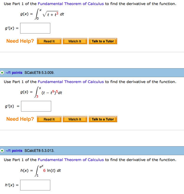 Solved Use Part 1 Of The Fundamental Theorem Of Calculus