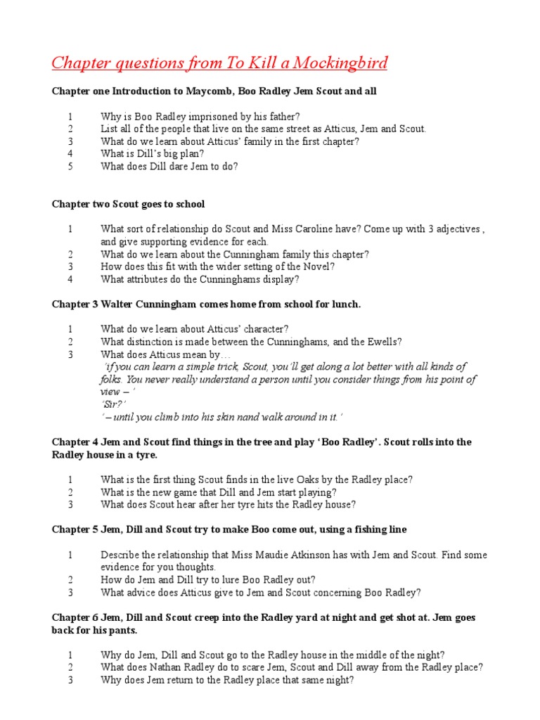 Chapter Questions From To Kill A Mockingbird All To Kill A