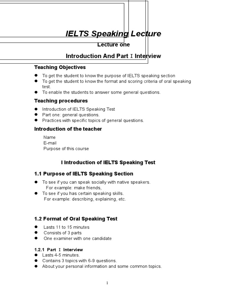 Ielts Speaking Lecture International English Language Testing