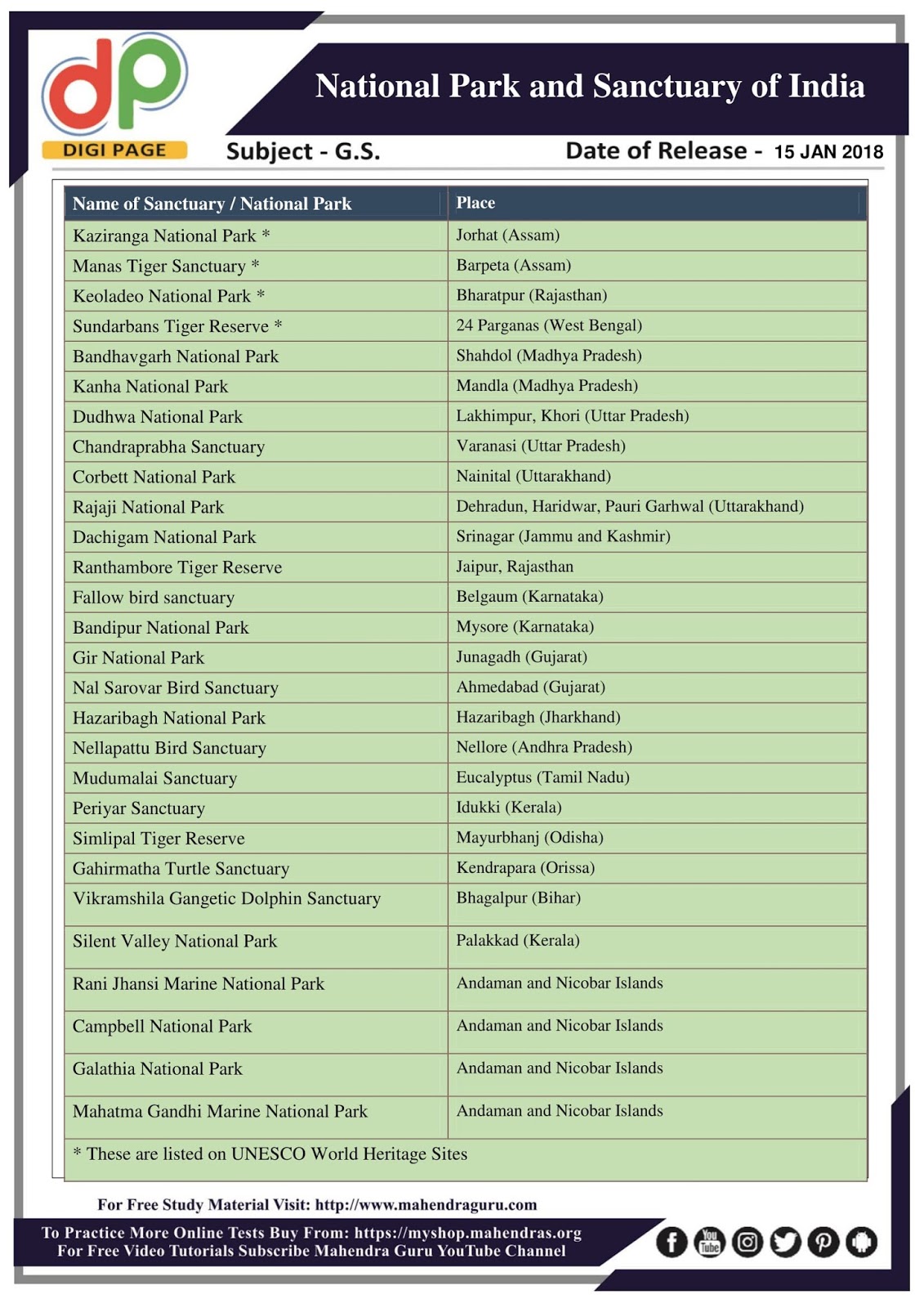 List Of Important National Parks Wildlife Sanctuaries And Bird