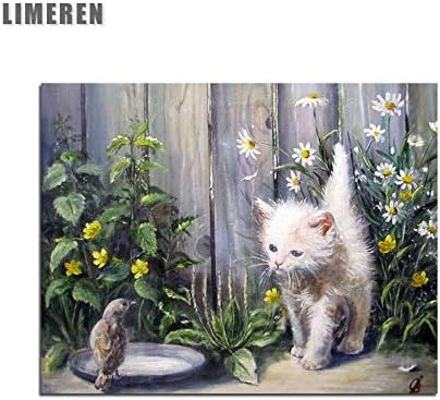 Mbywq Peinture Numero Chat Oiseau Fleurs Et Herbe Coloriage Animal