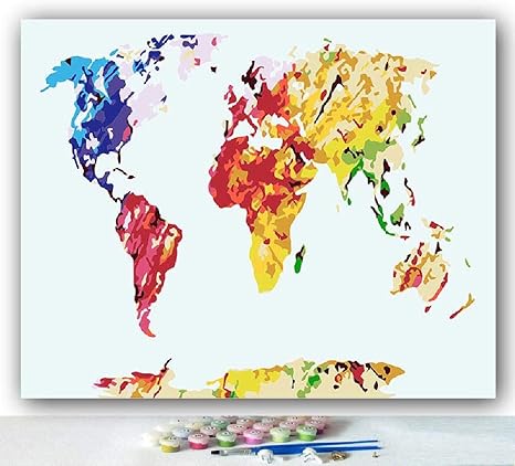 Peinture Par Numeros Carte Du Monde Couleurs Criardes Peinture