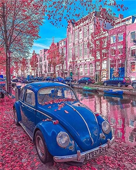 Peinture Numero Adulte Enfant Wowdecor Bleu Voiture Rose Arbre