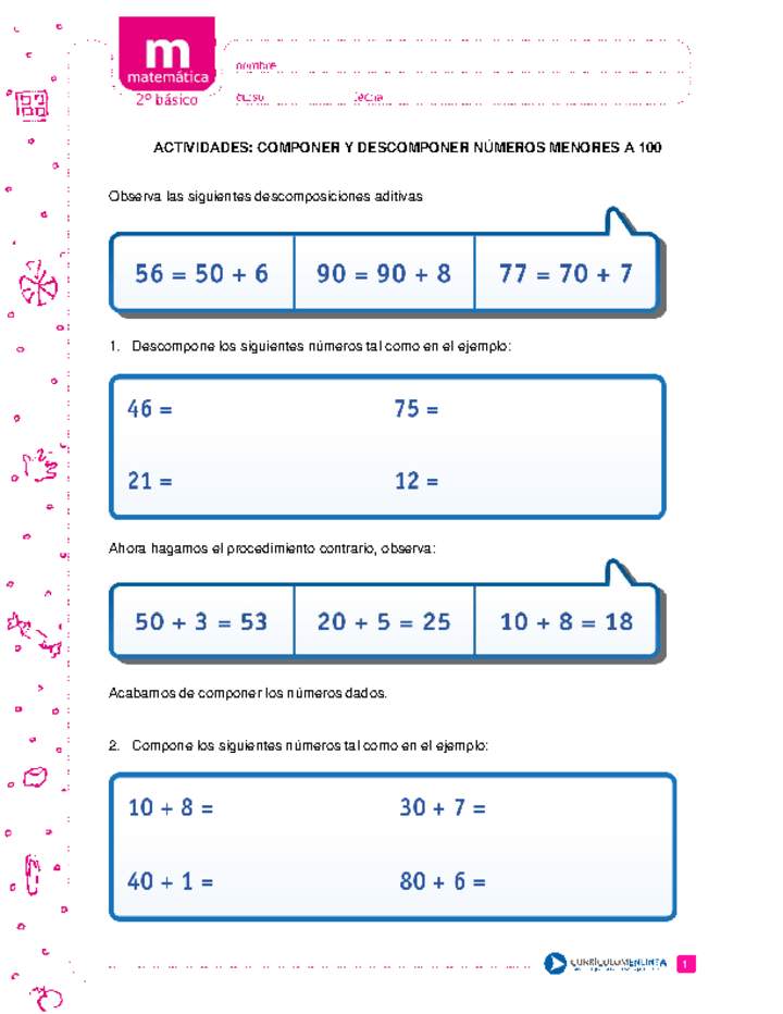 Componer Y Descomponer Numeros Menores A 100 Curriculum Nacional