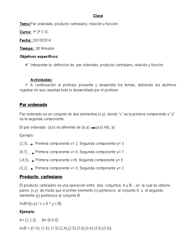 Par Ordenado Producto Cartesiano Definicion De Relaciones