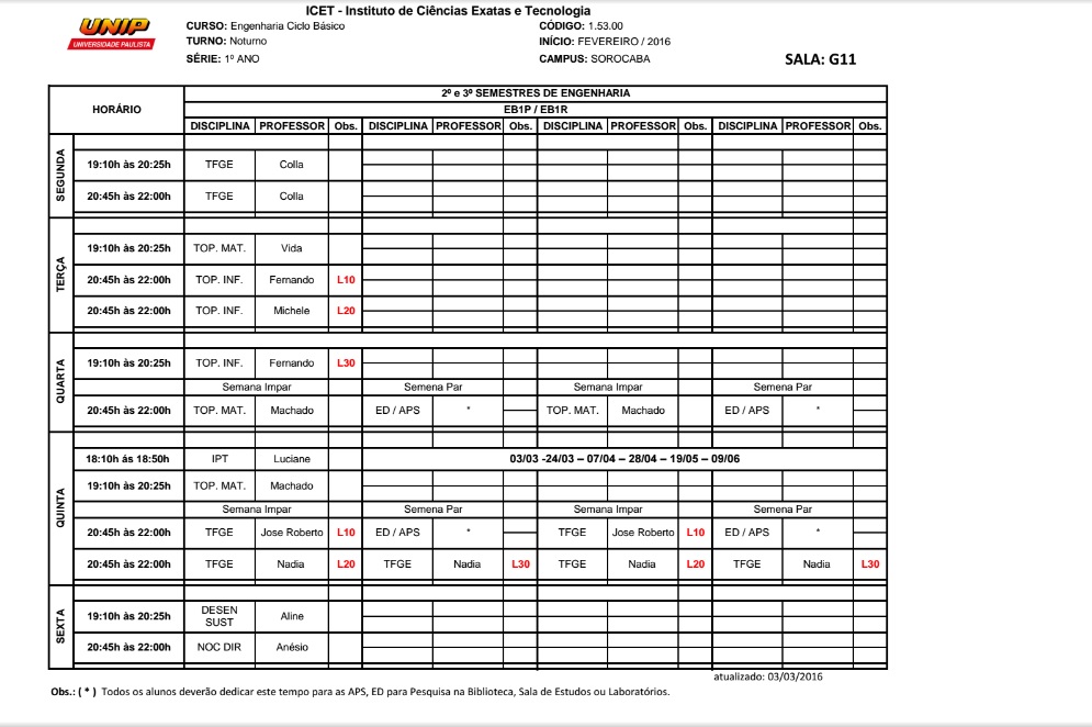 Horario Horario Engenharia De Producao Unip Alphaville 4 E 5