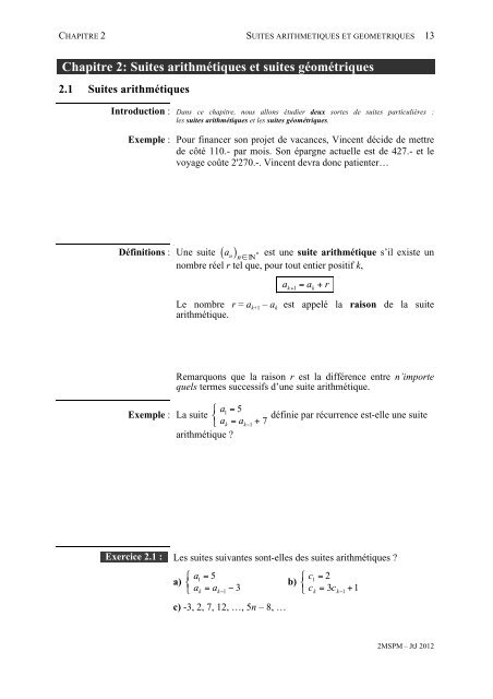 Chapitre 2 Suites Arithmetiques Et Suites Geometriques