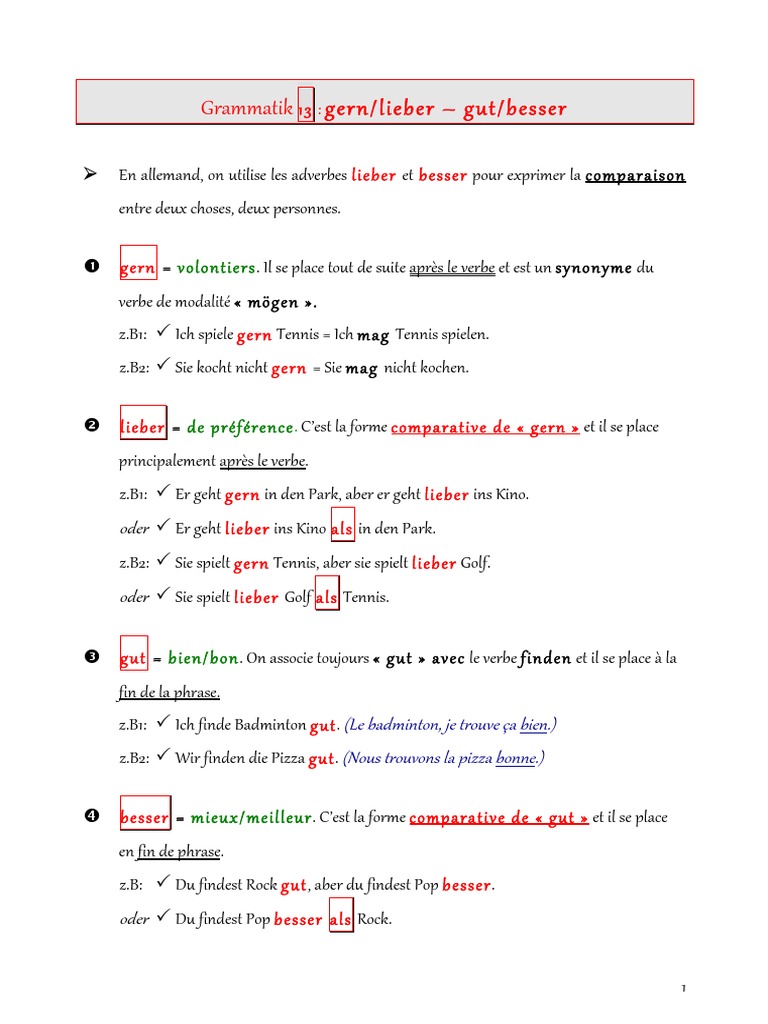 Grammatik 13 Gern Lieber Gut Besser