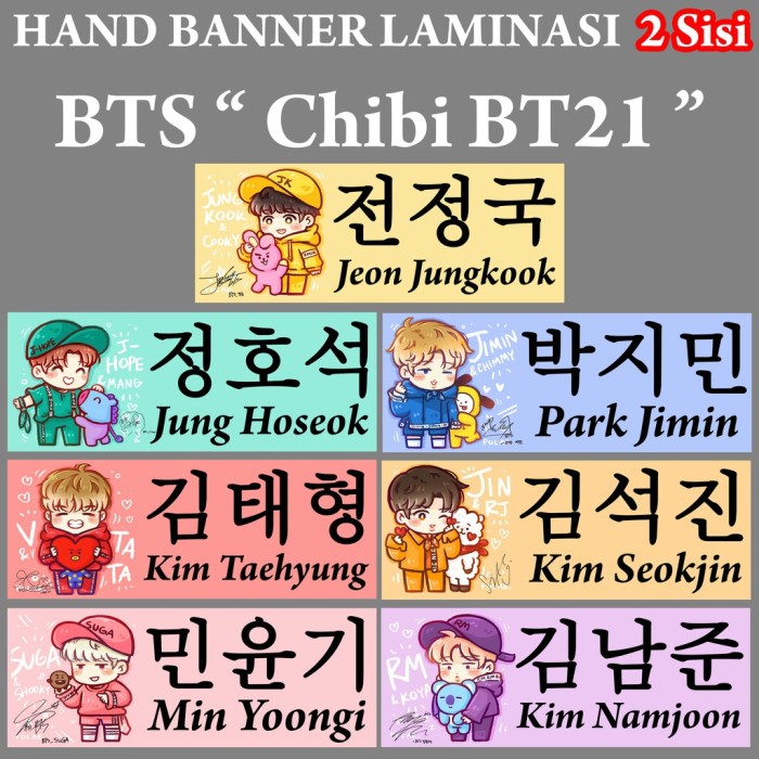 Jual Ready Stock Bts Laminasi Hand Banner Member Chibi Bt21 Kpop