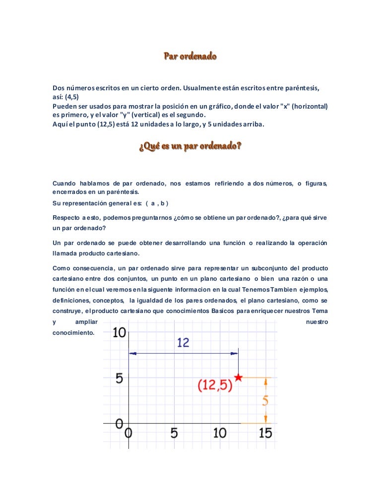 1 1 Pares Ordenados Y Plano Cartesiano Matelucia